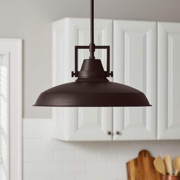 Wilhelm 16 in. 1-Light Bronze Industrial Farmhouse Pendant Light Fixture with Metal Shade
