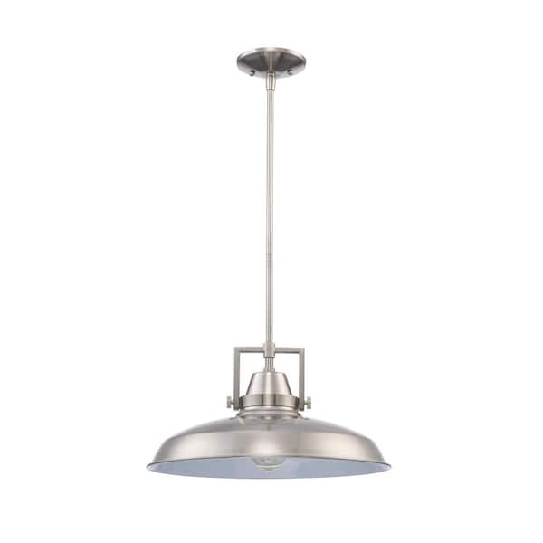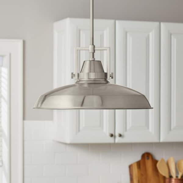 Wilhelm 16 in. 1-Light Brushed Nickel Industrial Farmhouse Pendant Light Fixture with Metal Shade