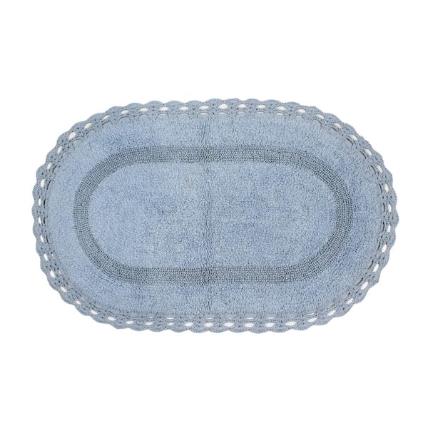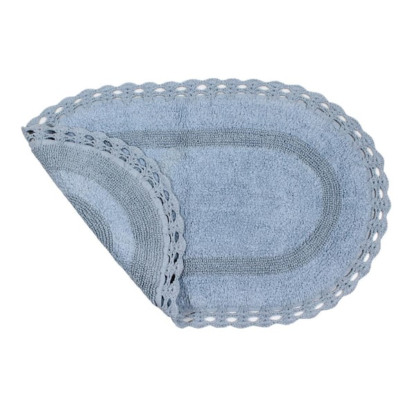 Hampton Crochet Reversible 100% Cotton Bath Rug Set, 24x40 Rectangle, Blue