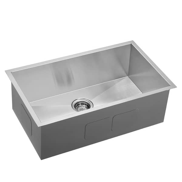 Handcrafted 16-Gauge Stainless Steel 30 in. Single Bowl Zero Radius Undermount Kitchen Sink with Faucet