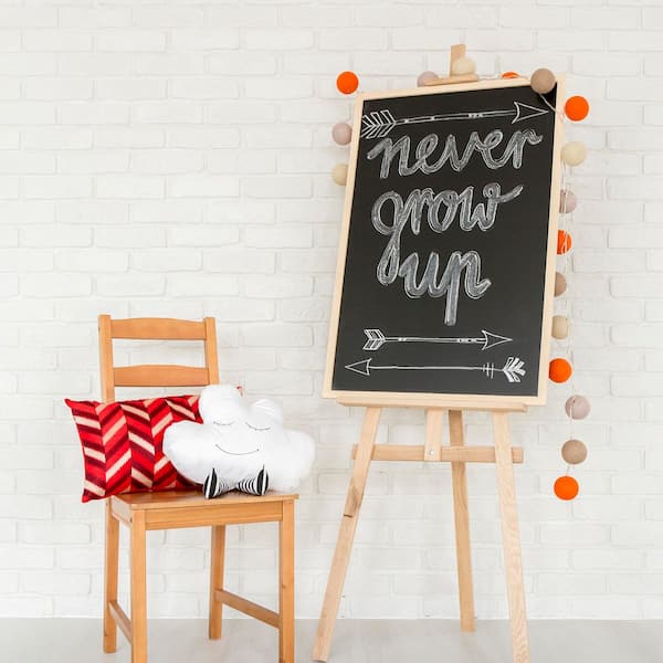 Features a chalkboard on one side, markerboard board on the other