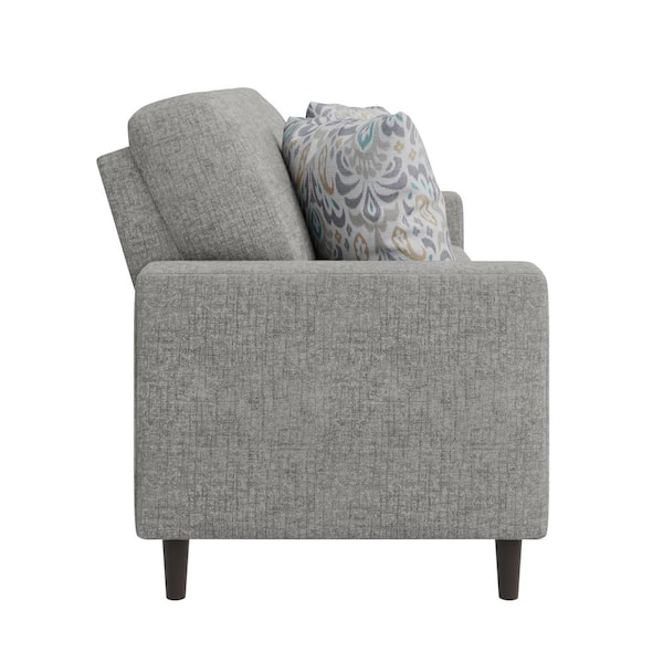 Copeland 77.5 in. Square Arm Fabric Rectangle Modern Sofa in. Textured Silver Pearl Chenille with 2 Throw Pillows