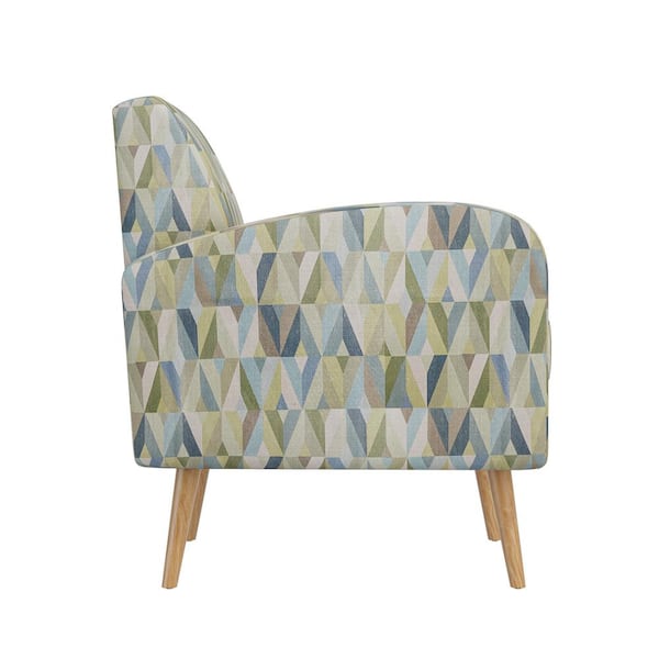 Mindy Pastel Multi-Color Green and Blue Prism Fabric Mid-Century Modern Accent Arm Chair