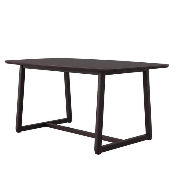 Richman 5-Piece Brown and Denim Blue Fabric Mid Century Modern Wood Dining Set with Rectangular Table and 4-Arm Chairs