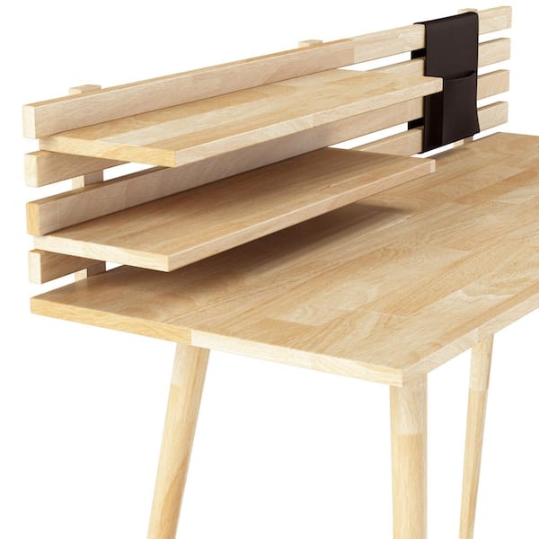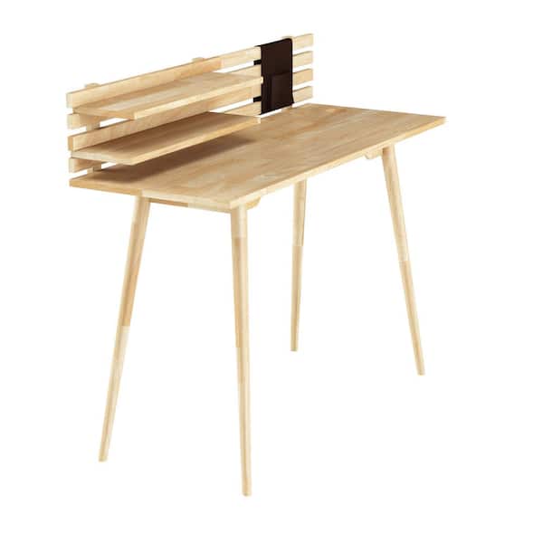 Routon 47.2 in. Rectangular Natural Solid Wood Writing Desk with Shelves