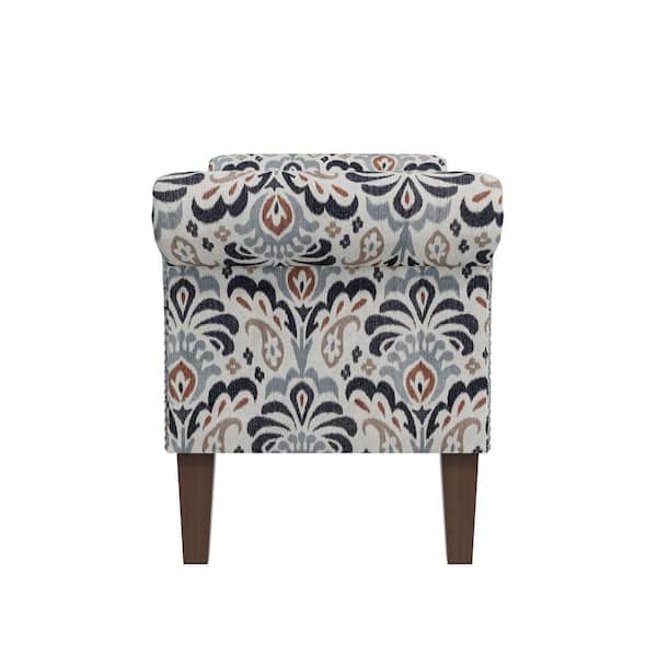 Wallen Gray and Black Damask Fabric Traditional Rolled Arm Rectangular Storage Bench 56.5 in. Ottoman with Nailheads