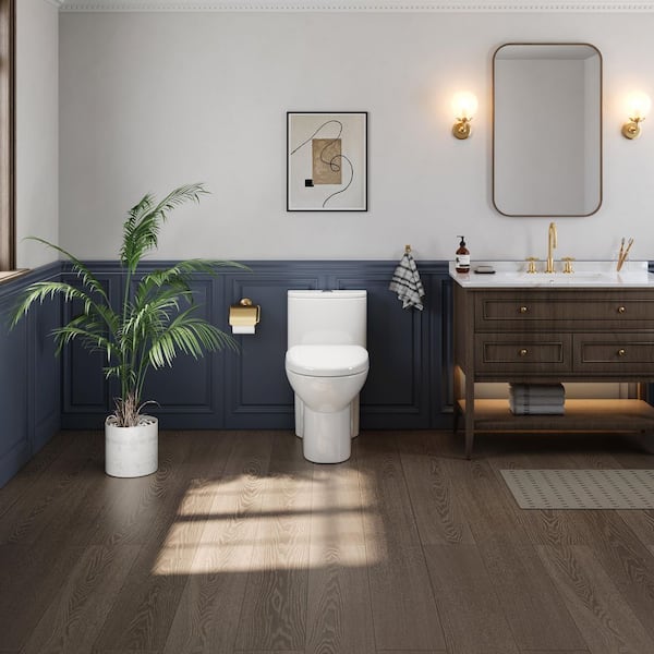 1-Piece 1.1/1.6 GPF Dual Flush Compact Elongated WaterSense Toilet in White Soft Close Seat Included