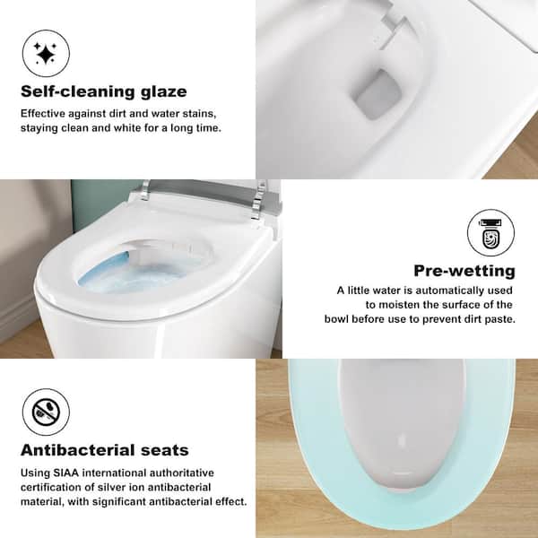 Elongated Smart Toilet Bidet 1.27 GPF in White with Built-in Tank, Auto Open/Close, UV Sterilization and Remote