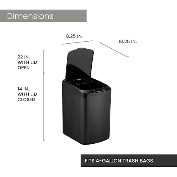 9 l/2.3 Gal. Black Metal Household Trash Can with Sensor Lid