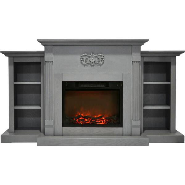 Classic 72 in. Electric Fireplace in Gray with Built-in Bookshelves and a 1500-Watt Charred Log Insert