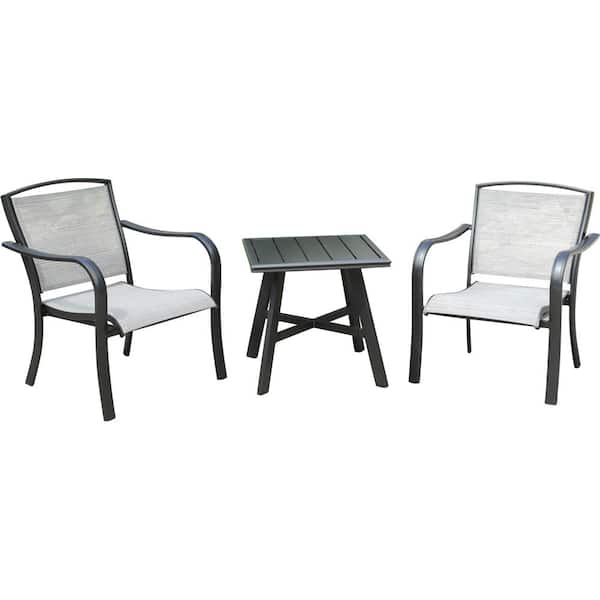 Foxhill Aluminum 3-Piece Commercial Sling Patio Conversation Set with 2-Sunbrella Lounge Chairs and Slat-Top Side Table