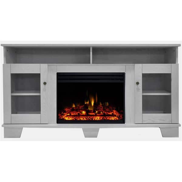 Glenwood 59.1 in. Freestanding Electric Fireplace TV Stand in White with Multi-Color Flames