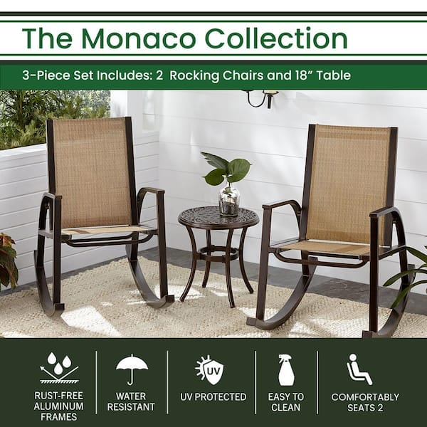 Monaco 3-Piece Aluminum Outdoor Patio Conversation Set with 18 in. Side Table