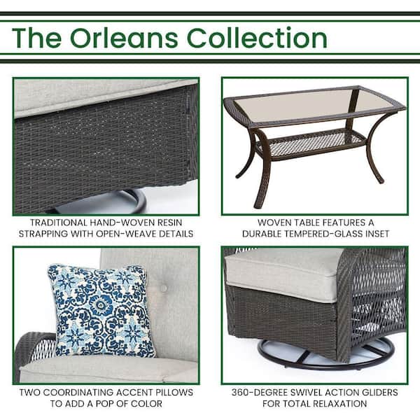 Orleans 4-Piece All-Weather Wicker Patio Deep Seating Set w/ Silver Lining Cushions, 4 Pillows and Coffee Table