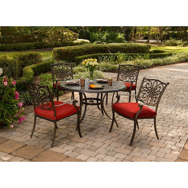 Traditions 5-Piece Round Outdoor Dining Set with Red Cushions
