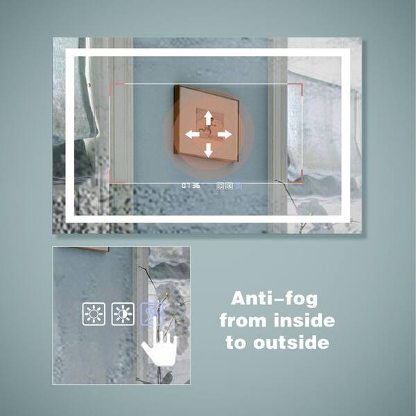 Hans 40 in. W x 24 in. H Rectangular Frameless Dimmable Multi-Color Digital Clock Wall Mount Bathroom Vanity Mirror
