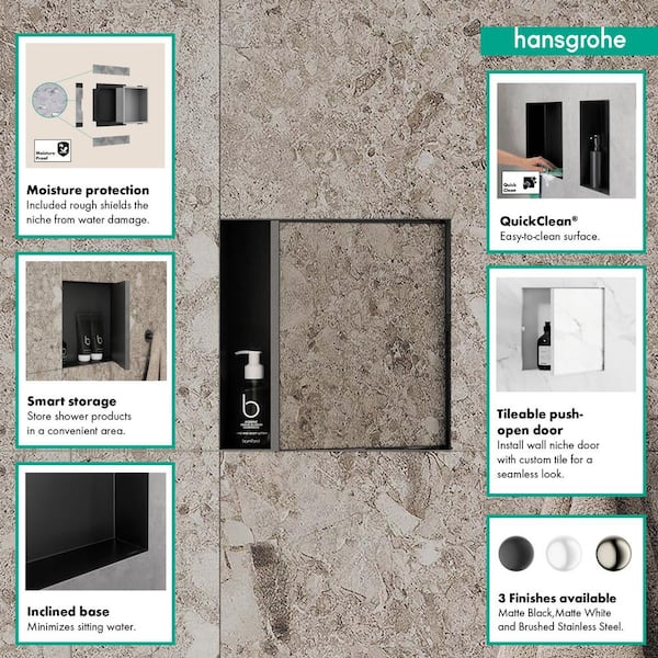 XtraStoris Rock 15 in. W x 15 in. H x 6 in. D Stainless Steel Shower Niche with Tileable Door in Matte Black