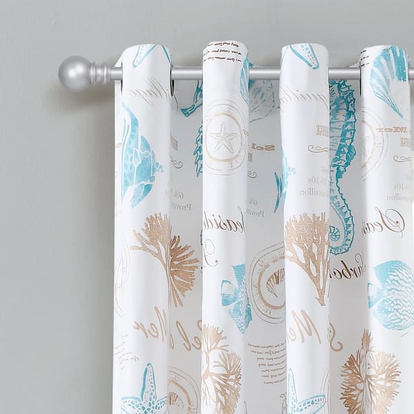 Harbor Life 52 in. W x 84 in. L Light Filtering Window Curtain Panels Blue/Taupe Set