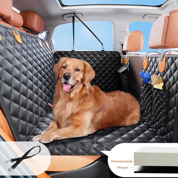 Hard Bottom Waterproof Dog Car Seat Cover with Mesh Window and Storage Pockets