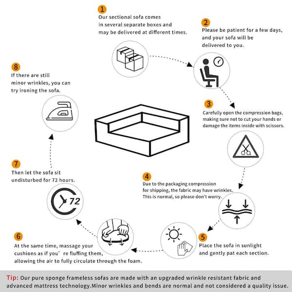 109.2 in. L Shaped Chenille Sleek Modern Sponge Sectional Sofa in Gray with 2-Throw Pillows, no Assembly Required