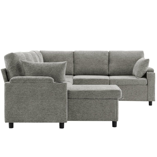 109.9 in. Chenille Sectional Sofa in. Light Gray with 2 Cup Holders 2 USB Ports Under-Seat and Arm Storage Sleeper