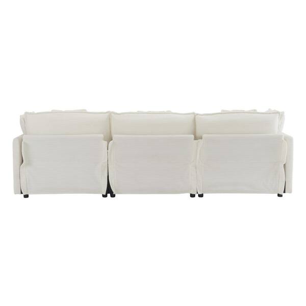 112.6 in Corduroy Modular Sectional Sofa in. Beige with Pillows, Side Pockets, 2-Layer Seat Cushions, 2 Ottomans