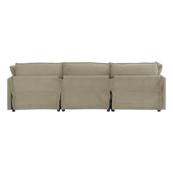 112.6 in Corduroy Modular Sectional Sofa in. Brown with Pillows, Side Pockets, 2-Layer Seat Cushions, 2 Ottomans
