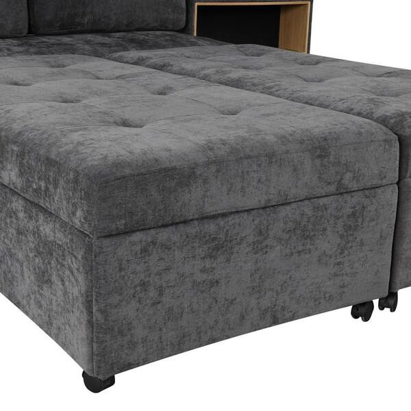 121.2 in. Armless 5-Piece Chenille Modular Sectional Sofa in. Dark Gray with 2 Storage Racks, Free-Combined Sofa Bed