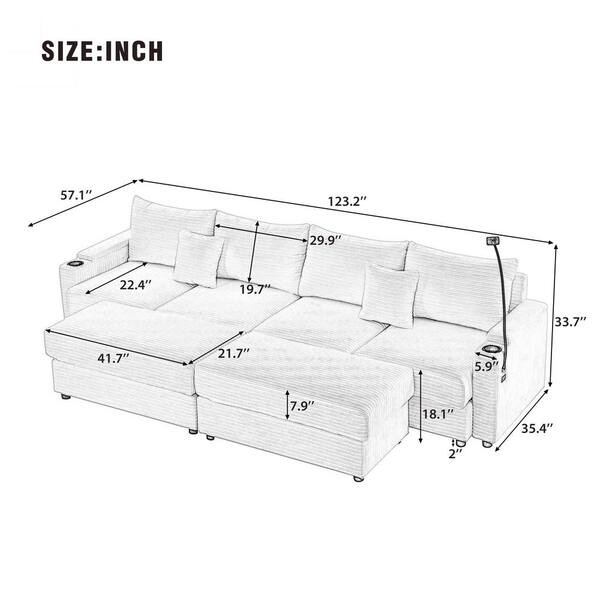 123.2 in. Corduroy Fabric Modern Sectional Sofa in Green with 2 Ottomans, Storage Armrests, USB Ports, Phone Holder
