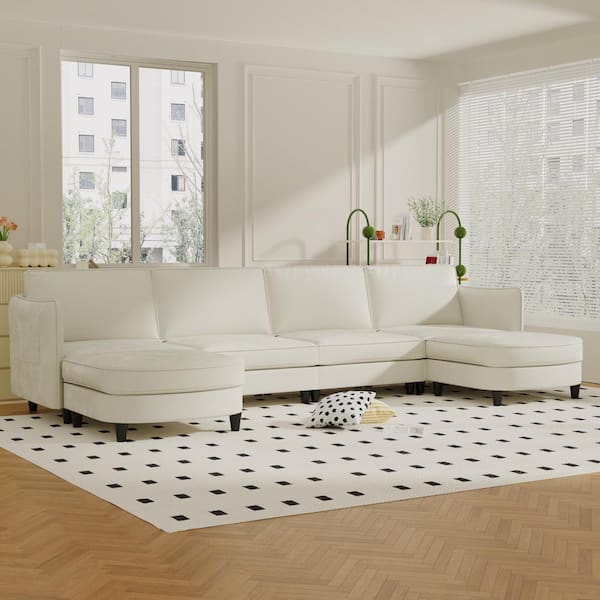 141.5 in. U Shaped Fabric Modern Large Sectional Sofa in Beige with Ottoman, Pockets for Living Room, Apartment, Office