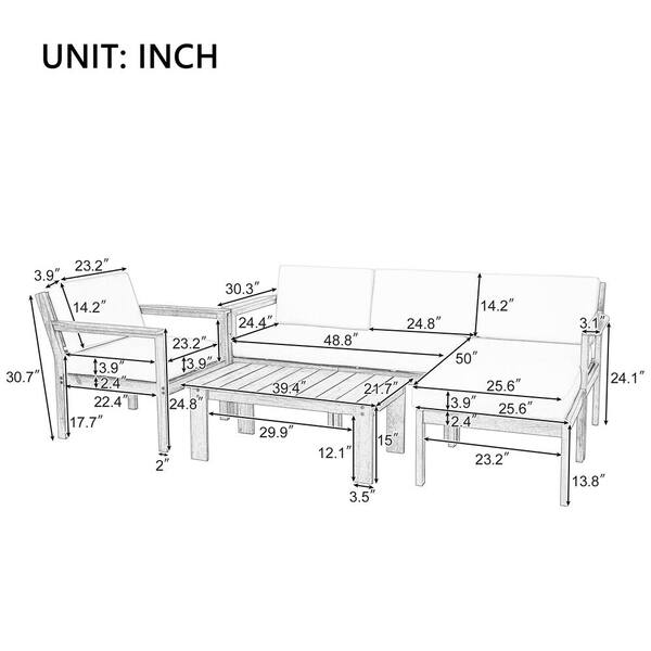 3-Piece Acacia Wood Patio Conversation Set with Beige Cushions and Table