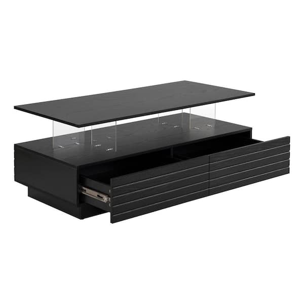 47.2 in. Black Rectangle MDF Coffee Table with LED Lights