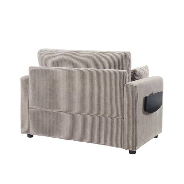 47.2 in Gray-Brown Corduroy Fabric Twin Size Sofa Bed with Memory Mattress, Foldable Side Table, Side Pocket, USB Ports
