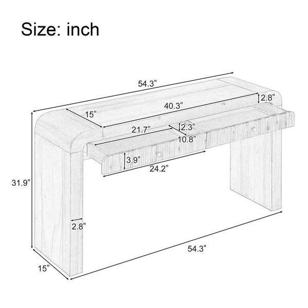 54.3 in. Brown Rustic Entryway Rectangle Wood Console Table with Fluted Drawer Front, Thick Legs