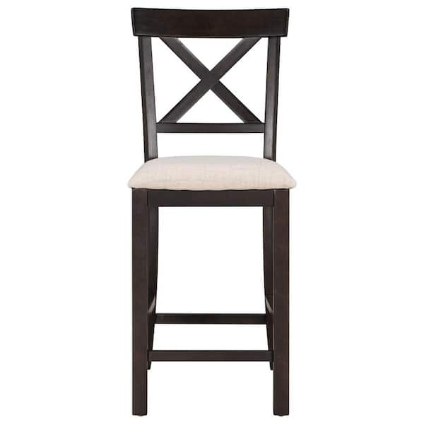 6-Piece Espresso Wood Counter Height Dining Table Set with Shelf, 4-Chairs and Bench