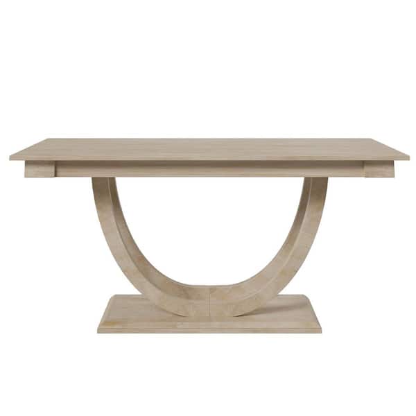 6-Piece Natural Color Wood Half Round Legs Dining Set with 4 Upholstered Chairs and Long Bench