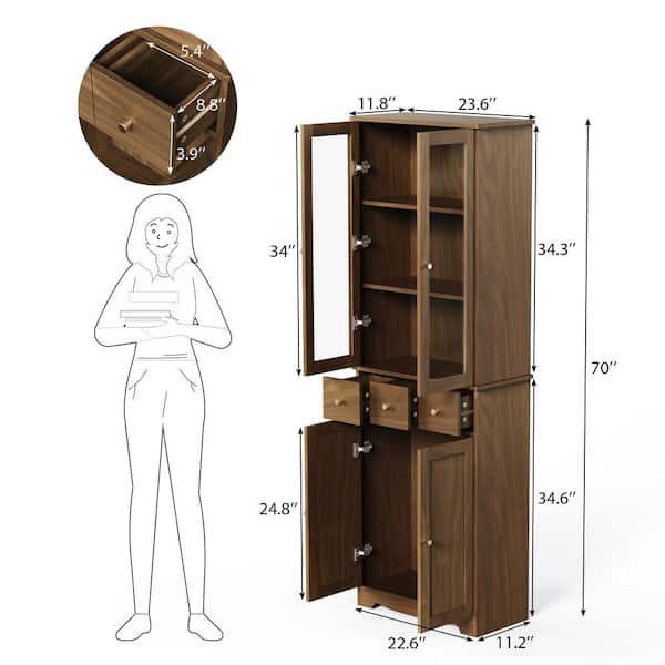 70 in. Tall Natural Wood Modern Home Office Bookcase with Adjustable Shelf, 3 Drawers and Large Cabinet