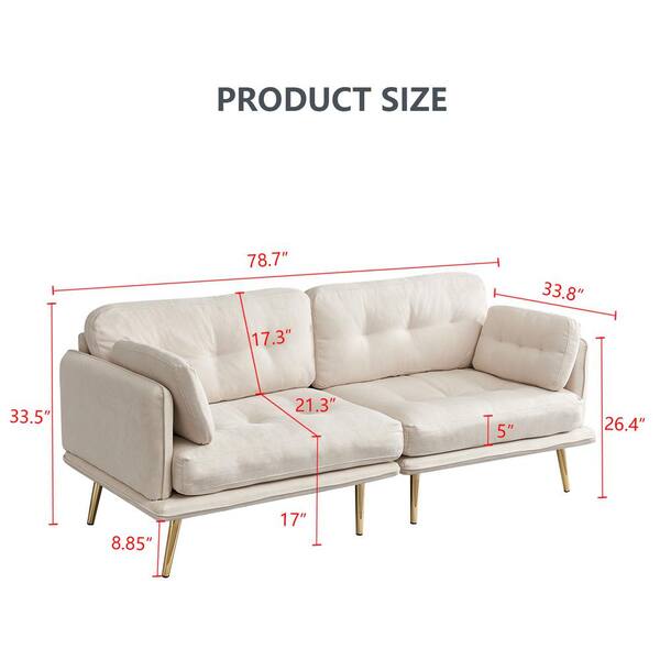 78.7 in. W Straight Arm 3-Seat Linen Fabric Rectangle Sofa in. Beige
