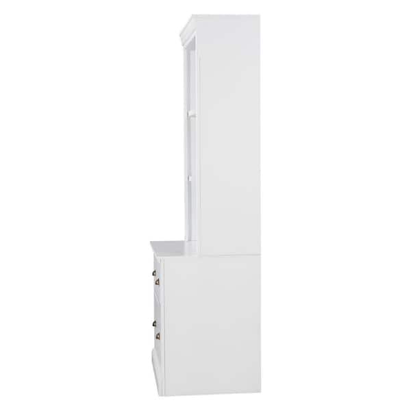 83.4 in. Tall White Wood 3-Shelf Accent Standard Bookcase with Adjustable Shelf, LED Lights, 2 Drawers