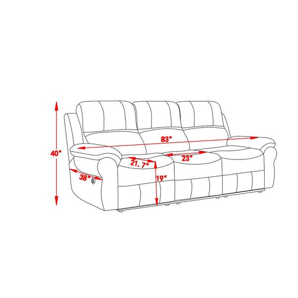 83 in. W Round Arm Faux Leather Rectangle Power Reclining Sofa in. Gray with Cup Holders, Wireless Charger, Magazine Bag