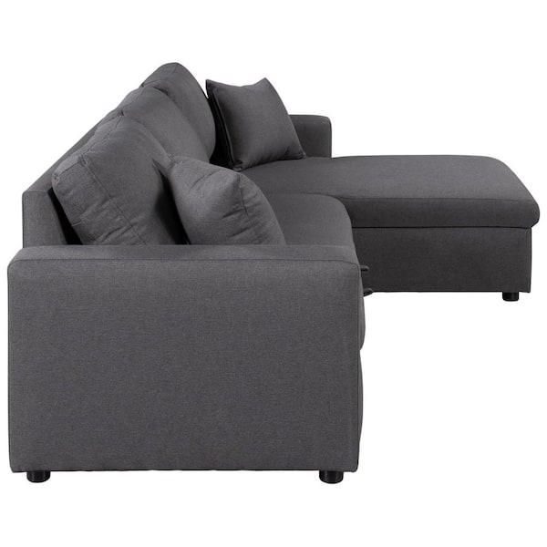 87.4 in. Square Arm Linen Upholstered L-Shape Sofa in Gray with Storage Seat, 2 Tossing Cushions, Twin Sleeper