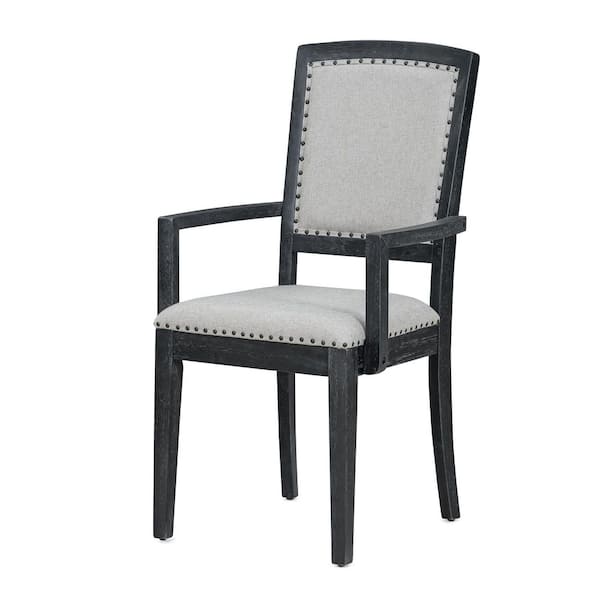 9-Piece Black Wood Top Extendable Dining Table Set Seats 8 with a Removable 24 in. Leaf, 8-Gray Linen Chairs