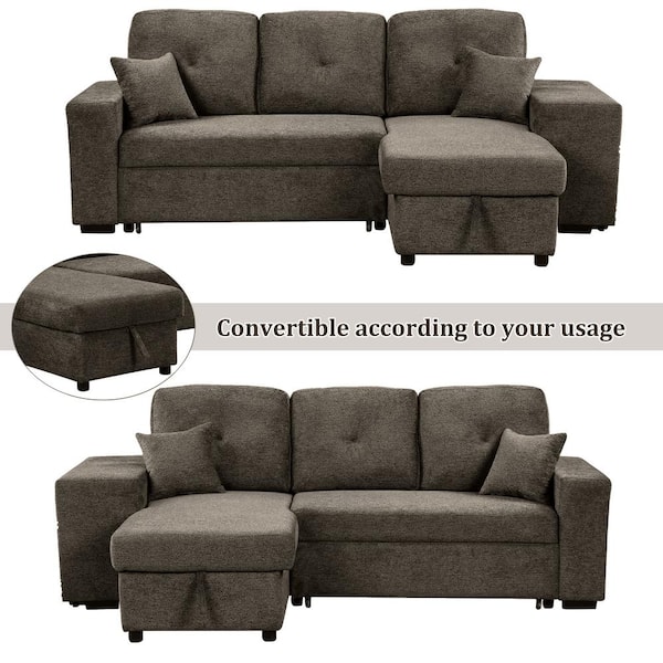 95 in. Knox Charcoal Twin Size Pull-Out Sofa Bed with Side Shelf and 2-Stools, Corner Sectional Sofa with Storage Chaise