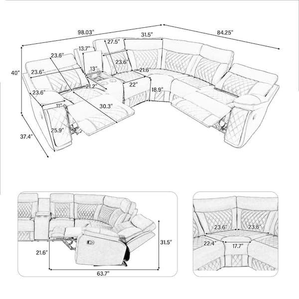 98 in. W Square Arm Faux Leather L-Shaped Reclining Sectional Sofa in Black with Cup Holders and Hide-Away Storage
