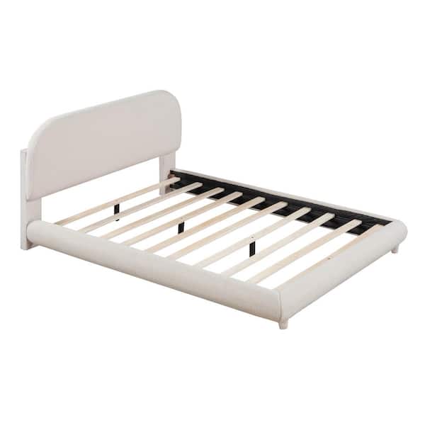 Beige Wood Frame Full Size Teddy Fleece Fabric Upholstered Platform Bed with Stylish Curve-Shaped Design