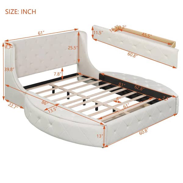 Beige Wood Frame Queen Upholstered Platform Bed with Wingback Headboard, 2-Side Storage Stool and 1-Big Drawer