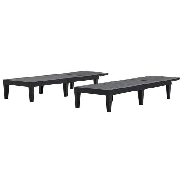 Black 2-Piece Plastic Chaise Lounge Set of 2 with 5-Position Adjustable Backrest