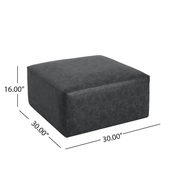 Black 30 in. Square PU Leather Modern Ottoman