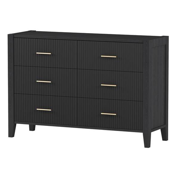 Black 6-Drawer 48 in. Wide Dresser with Metal Handles, Storage Cabinet with Vertical Stripe Finish Drawer