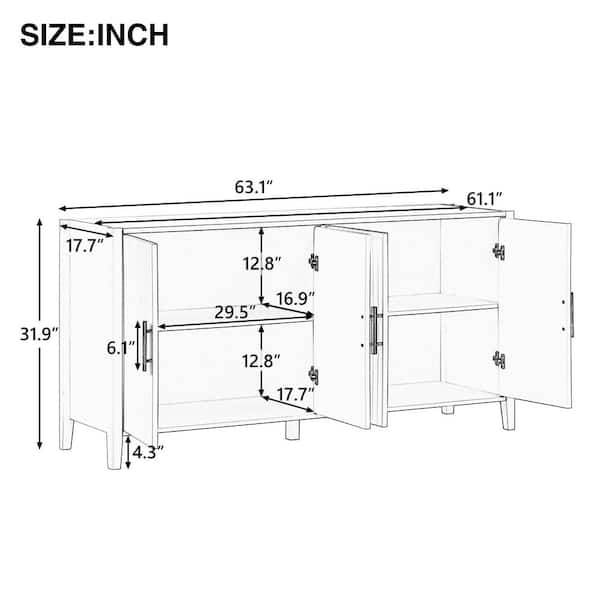 Black MDF 63.1 in. W. Sideboard, Accent Storage Cabinet with Metal Handles